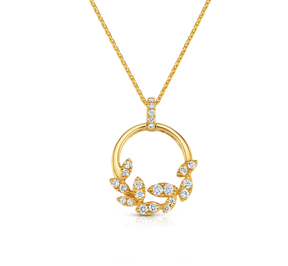M(Y) 14K .27CT DIAMOND ACCENTED LEAF ETERNITY CIRCLE PENDENT