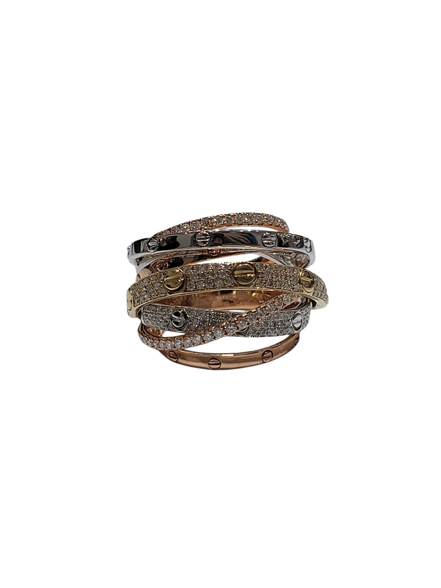 M(Y) 14K TT 1.10CT EIGHT ROW DECORATIVE BYPASS FASHION RING
