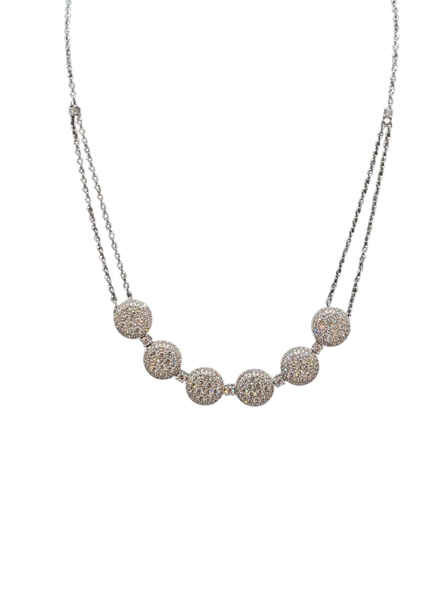 M(Y) 14K 4.43CT CLUSTER DIAMOND DOUBLE CHAIN NECKLACE