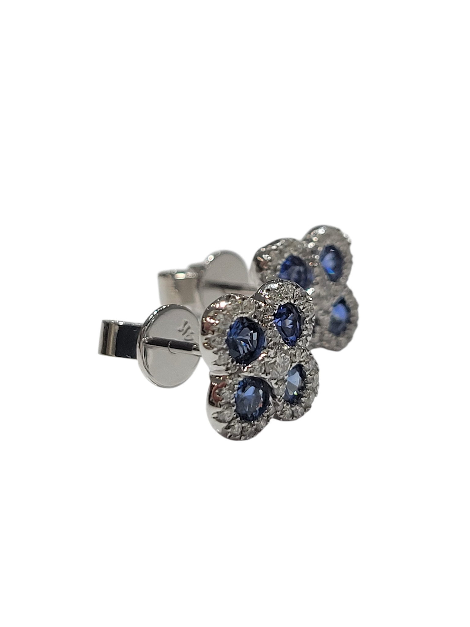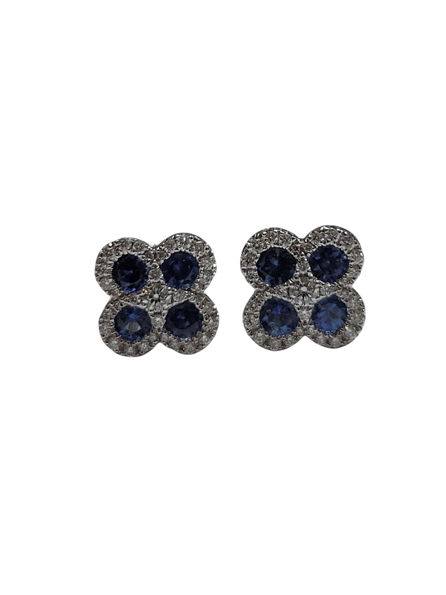 M(Y) 14K .88CT SAPPHIRE .30CT DIAMOND CLOVER STUDS