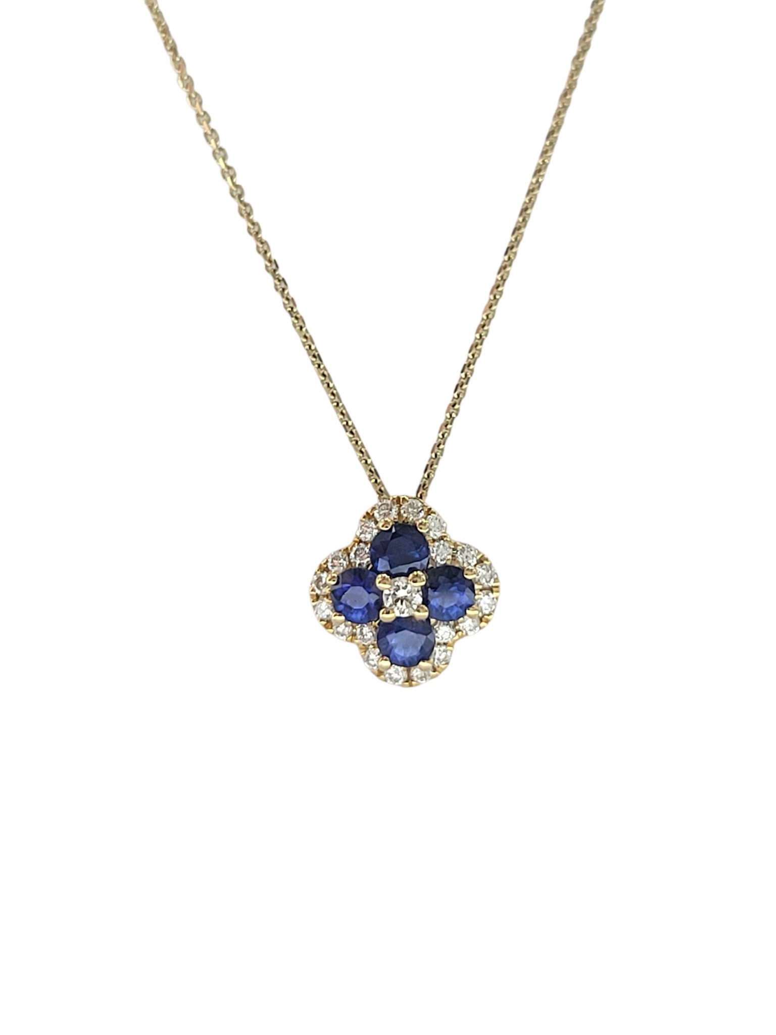 M(Y)14KY .34CT SAPPHIRE .13CT DIAMOND HALO PENDENT