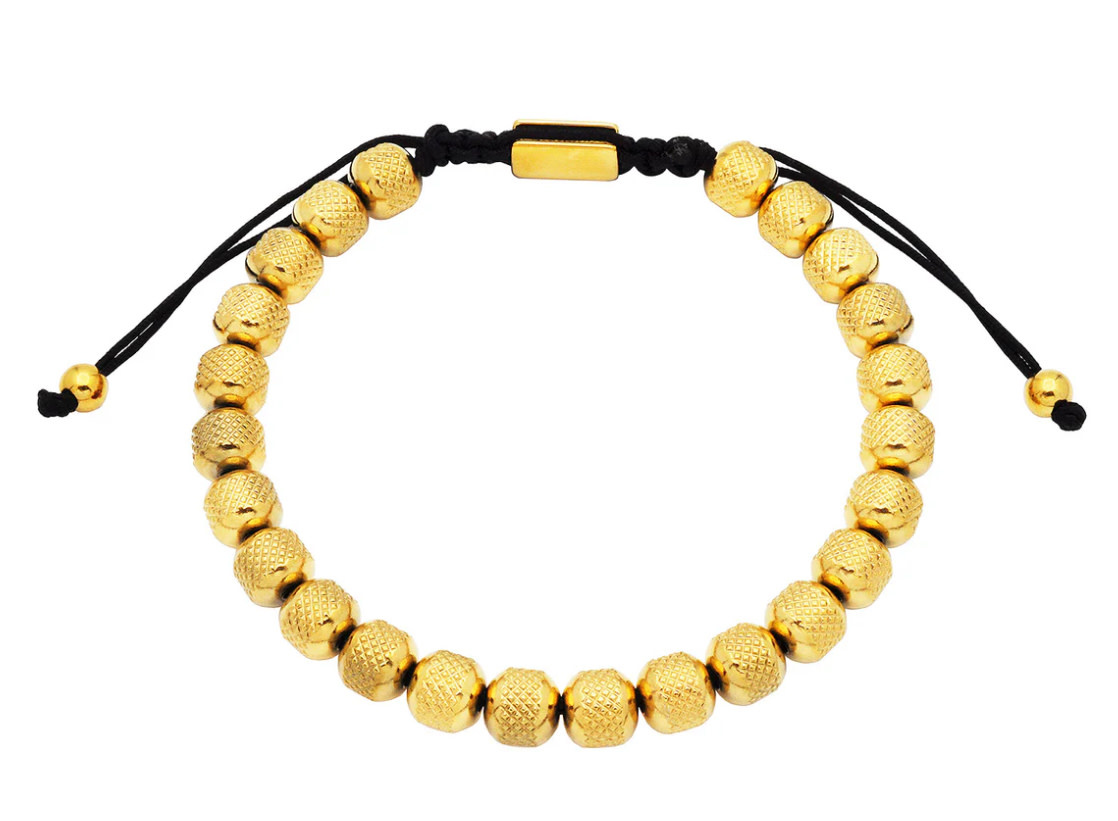 (R) MENS 7MM GOLD PLATED STAINLESS STEEL BEAD DRAWSTRING BRACELET