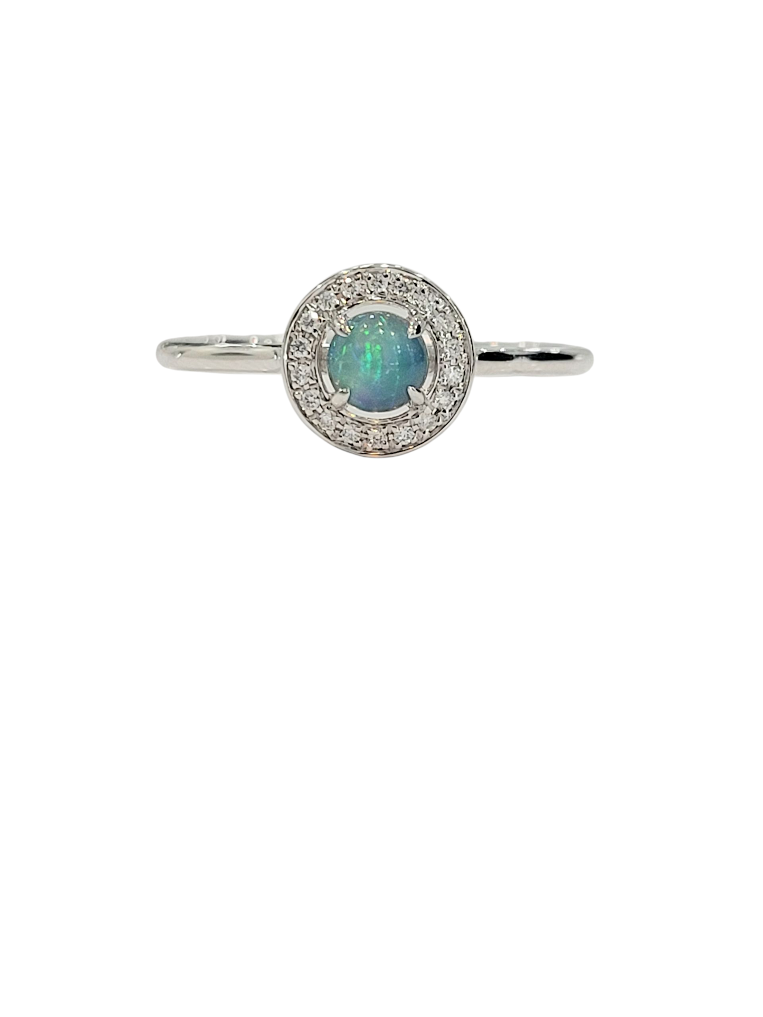 (X)14K .90CT OPAL .04 DIAMOND HALO RING