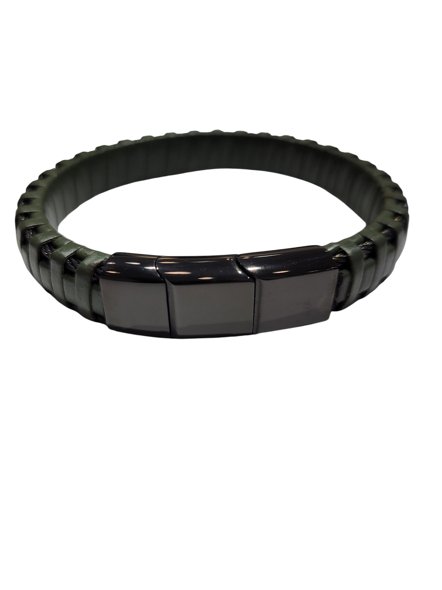 (R) OLIVE LEATHER AND STEEL MAGNETIC CLASP BRACELET