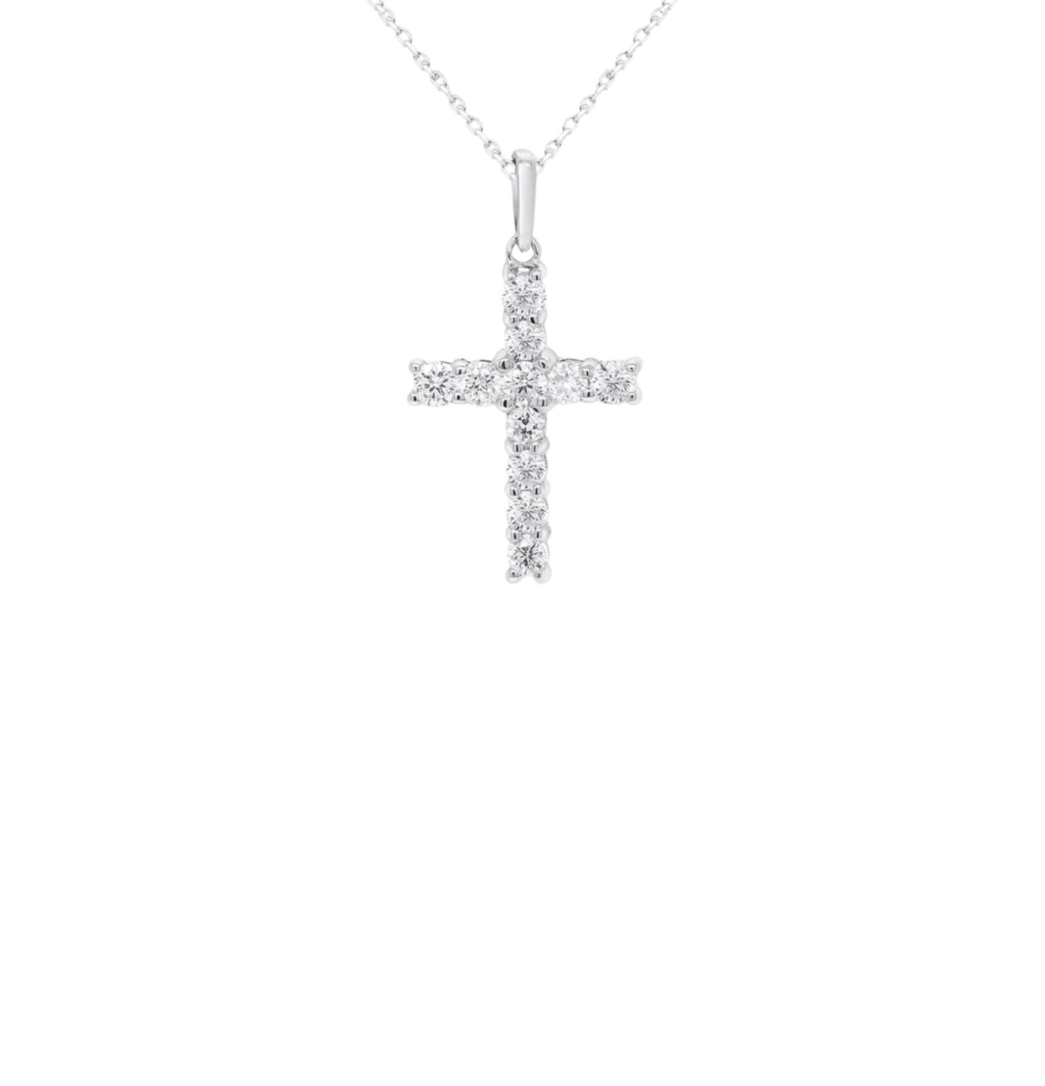 (Y) 14K .13CT 12 DIAMOND CROSS PENDENT 18INCH CABLE CHAIN