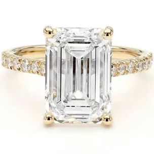 (Z) 14K 5.08LAB .40MT VS1 , YELLOE GOLD LAB GROWN DIAMOND BRIDAL RING, EMERALD CUT DIAMONDS CENTER , IGI CERTIFIED # LG665451323, 16 ROUND LAB DIAMONDS, VS1 CLARITY, E COLOR